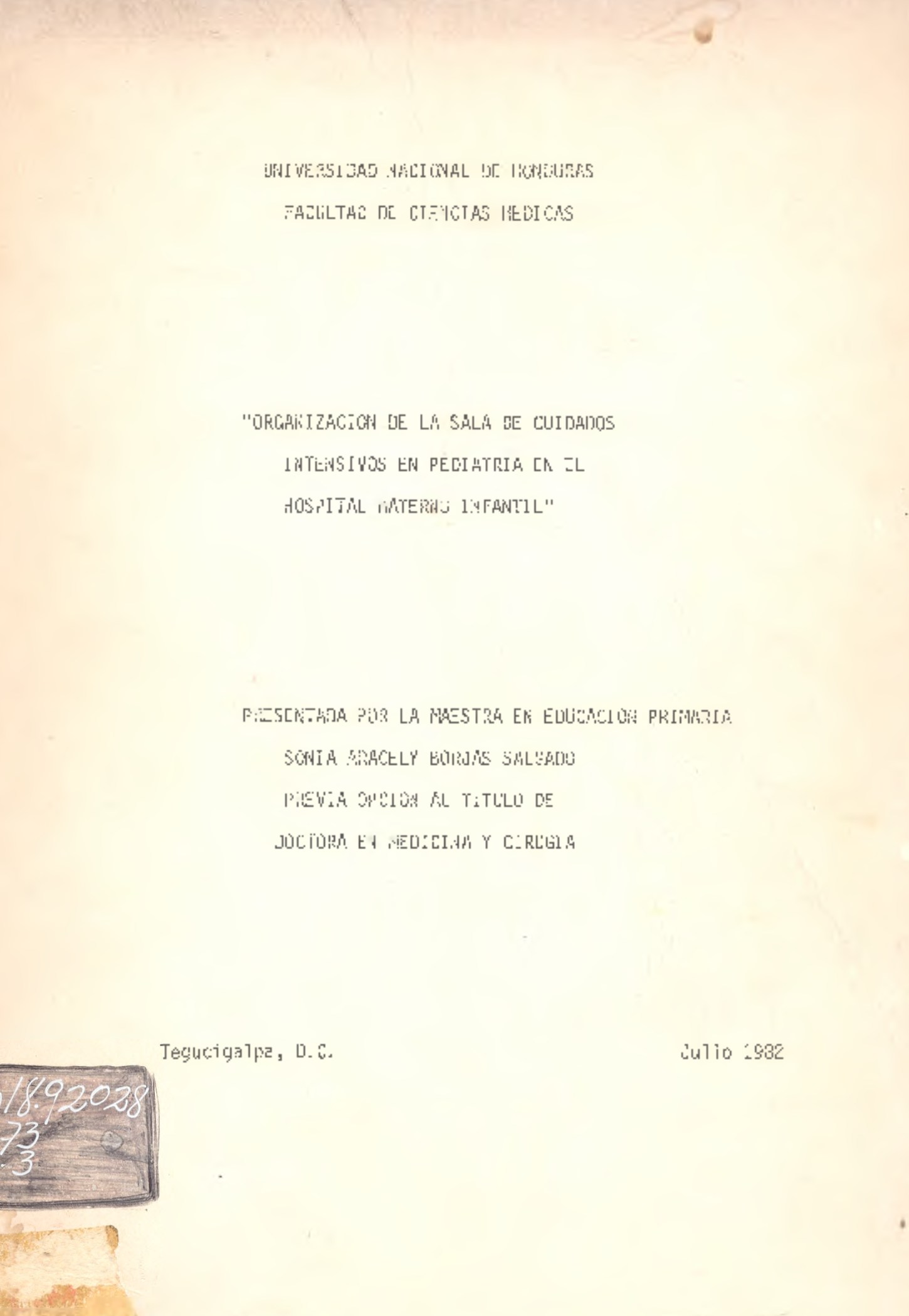 "ORGANIZACION DE LA SALA DE CUIDADOS INTENSIVOS EN PEDIATRIA EN EL HOSPITAL MATERNO INFANTIL"