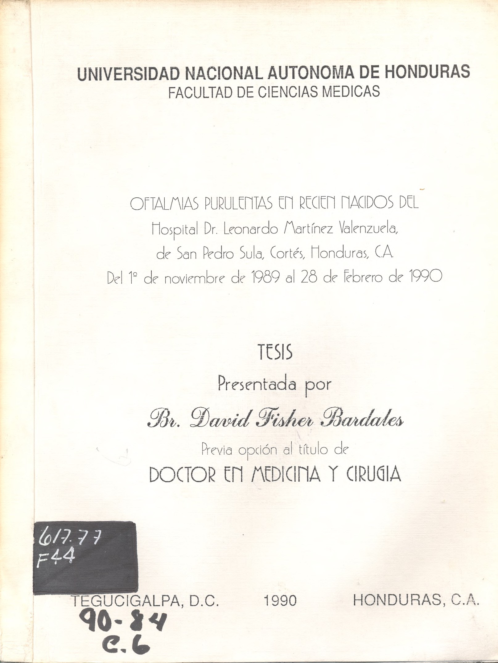 OFTALMIAS PURULENTAS EN RECIEN NACIDOS DEL HOSPITAL DR. LEONARDO MARTINEZ VALENZUELA, DE SAN PEDRO SULA, CORTES, HONDURAS, DEL 1 DE NOVIEMBRE DE 1989 AL 28 DE FEBRERO DE 1990