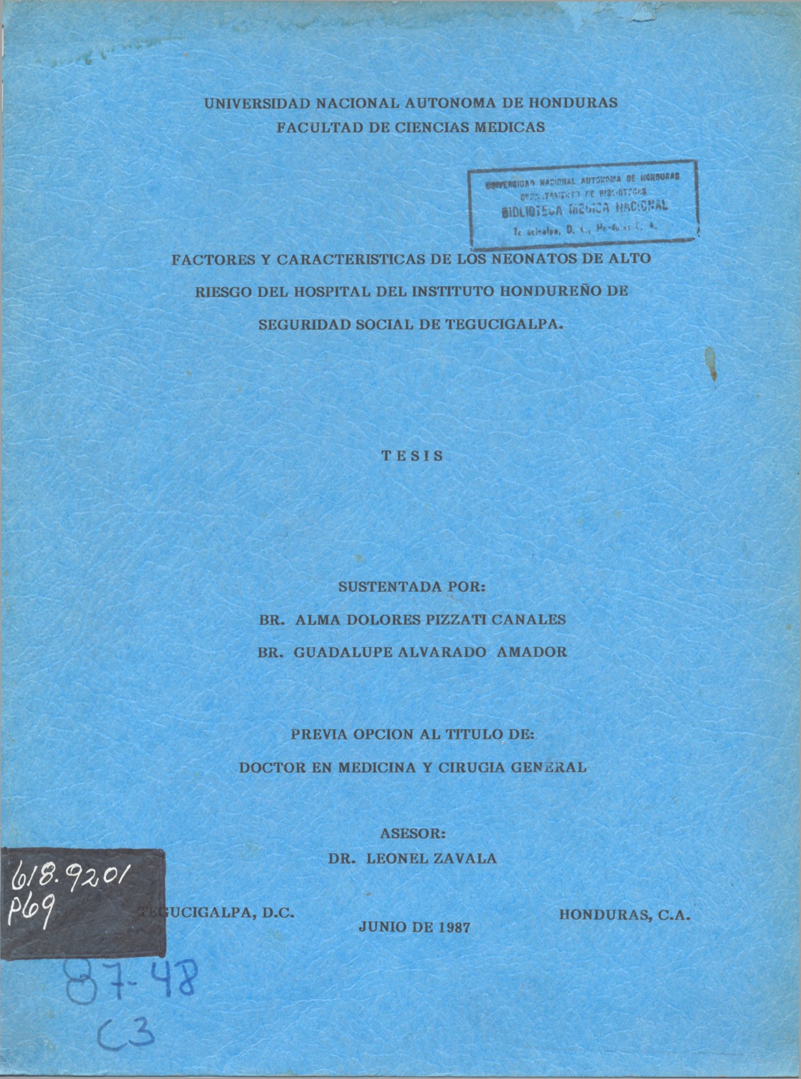 FACTORES Y CARACTERISTICAS DE LOS NEONATOS DE ALTO RIESGO DEL HOSPITAL DEL INSTITUTO HONDUREÑO DE SEGURIDAD SOCIAL DE TEGUCIGALPA