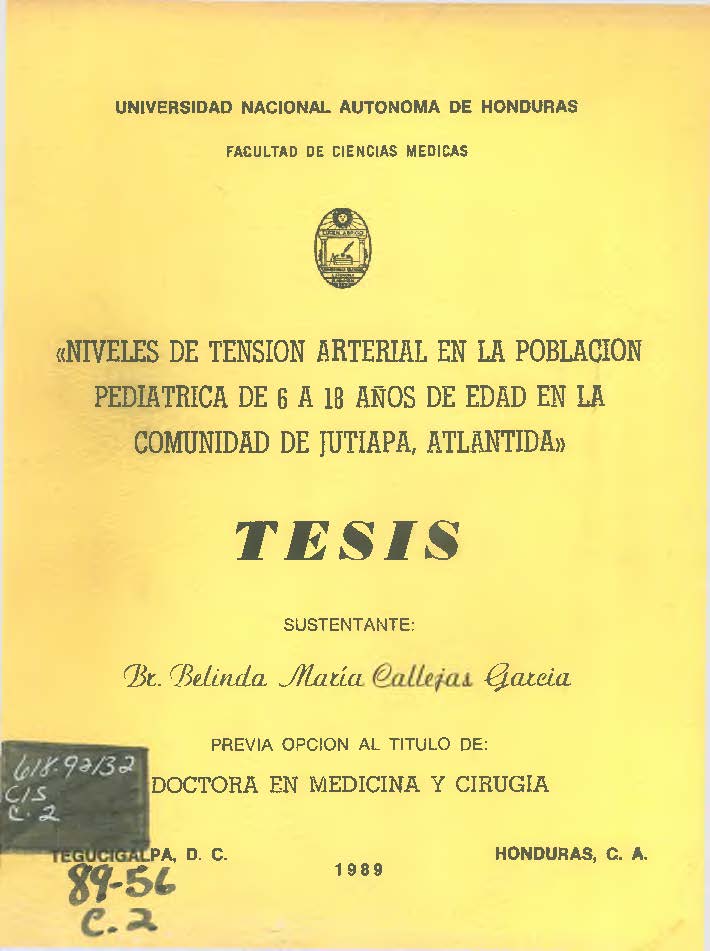 NIVELES DE TENSION ARTERIAL EN LA POBLACION PEDIATRICA DE 6 A 18 AÑOS DE EDAD COMUNIDAD DE JUTIAPA, ATLANTIDA.