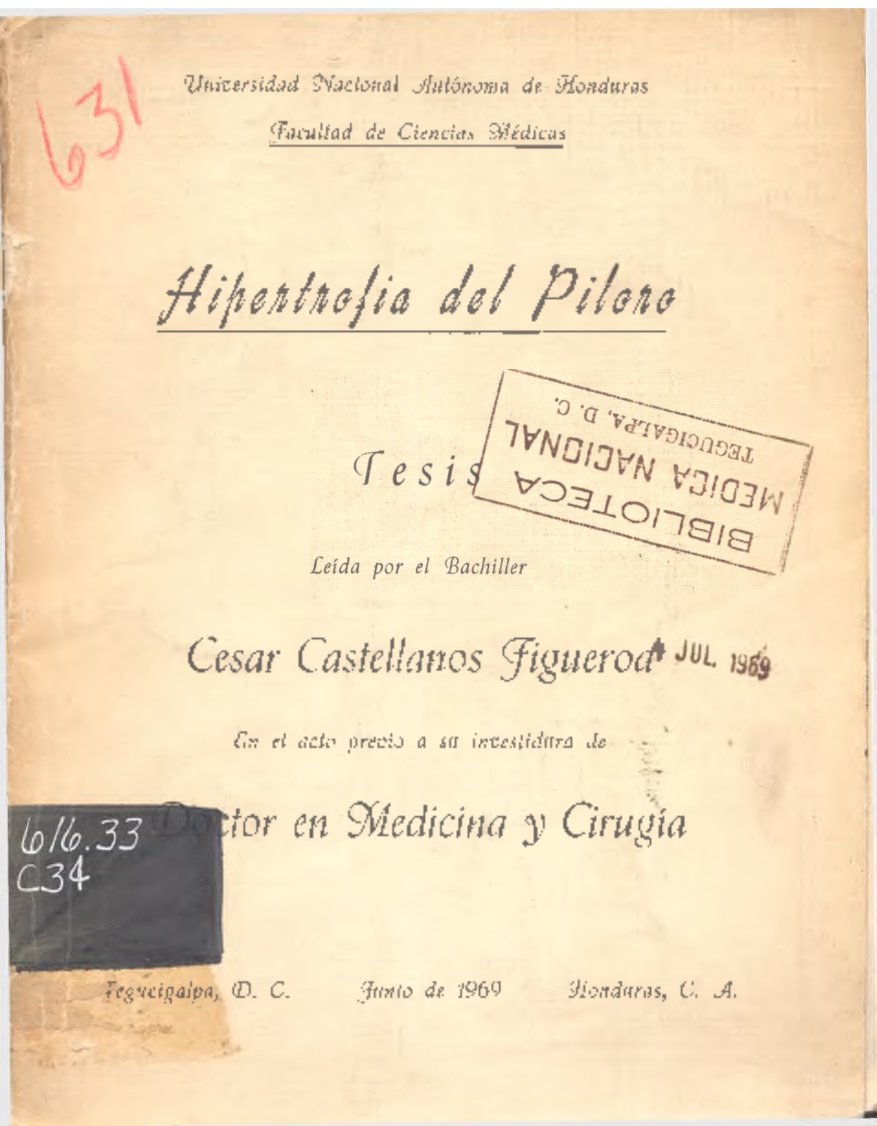 Tegucigalpa, Honduras; 1969