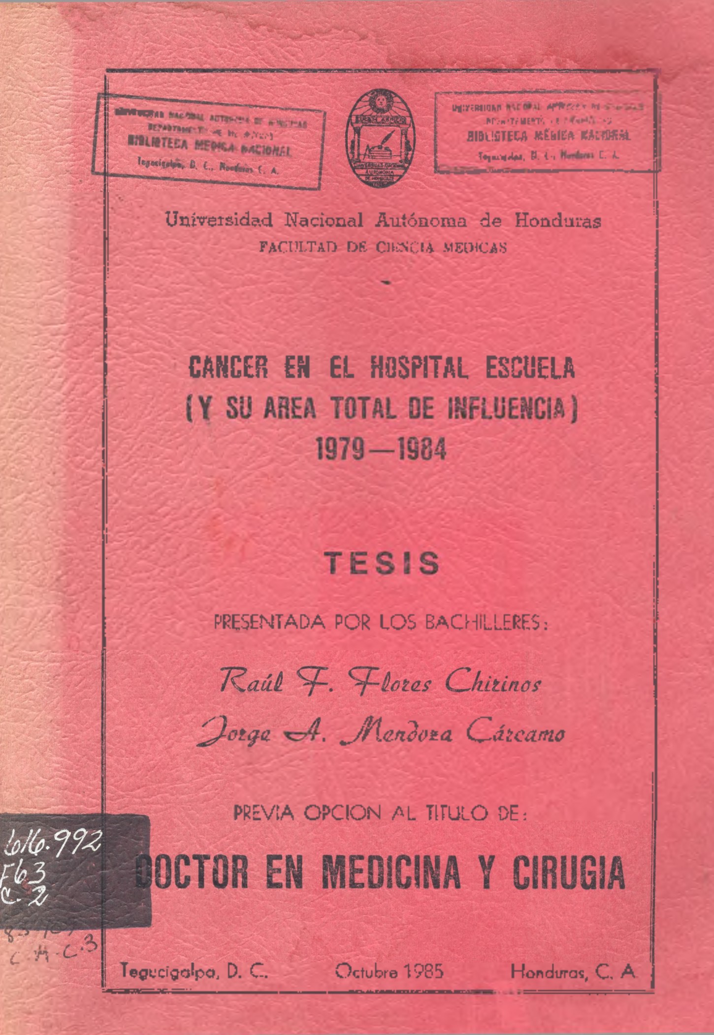 CANCER EN EL HOSPITAL ESCUELA (Y SU AREA TOTAL DE INFLUENCIA) 1979-1984