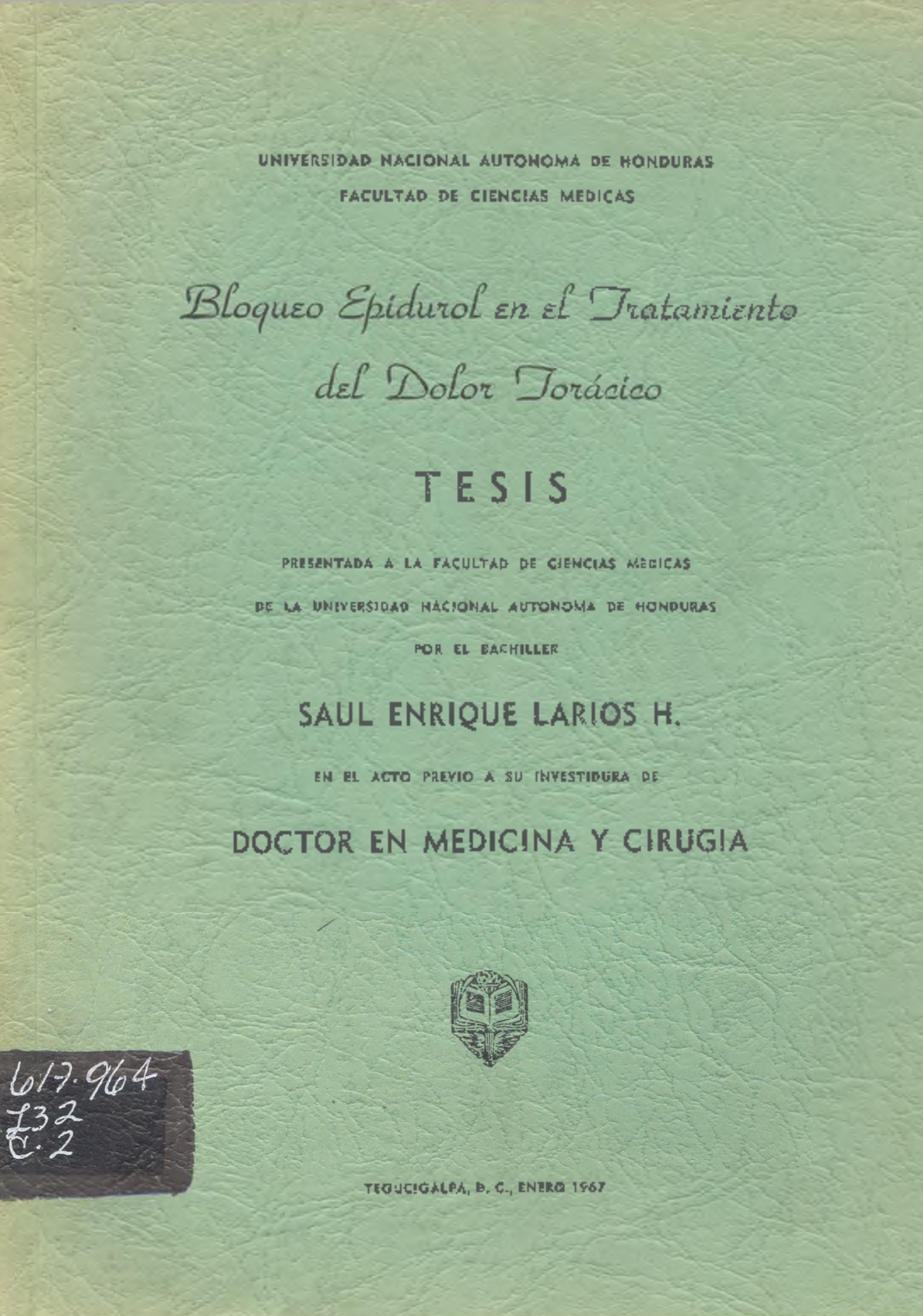 BLOQUEO EPIDURAL EN EL TRATAMIENTO DEL DOLOR TORACICO