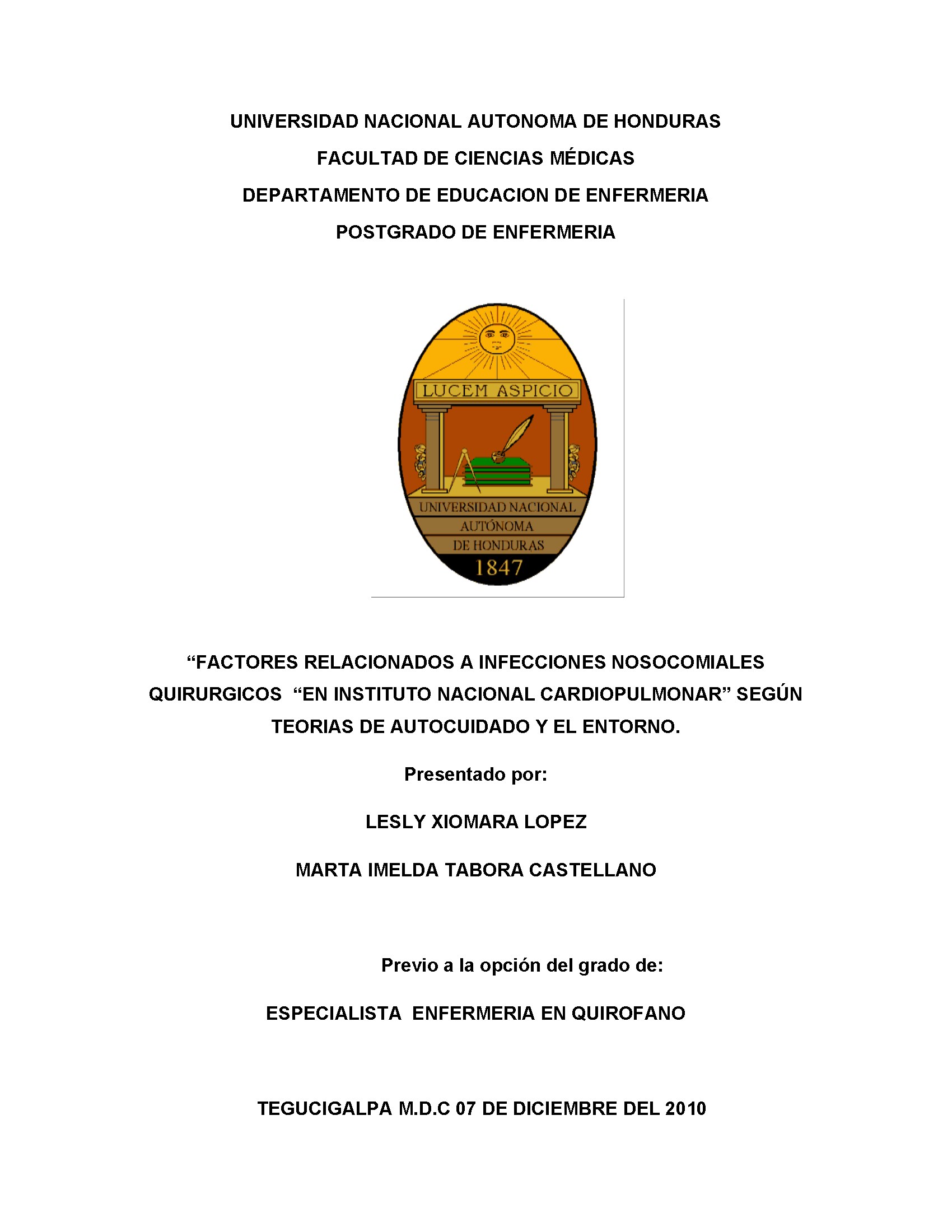 FACTORES RELACIONADOS A INFECCIONES NOSOCOMIALES QUIRURGICOS “EN INSTITUTO NACIONAL CARDIOPULMONAR” SEGÚN TEORIAS DE AUTOCUIDADO Y EL ENTORNO.