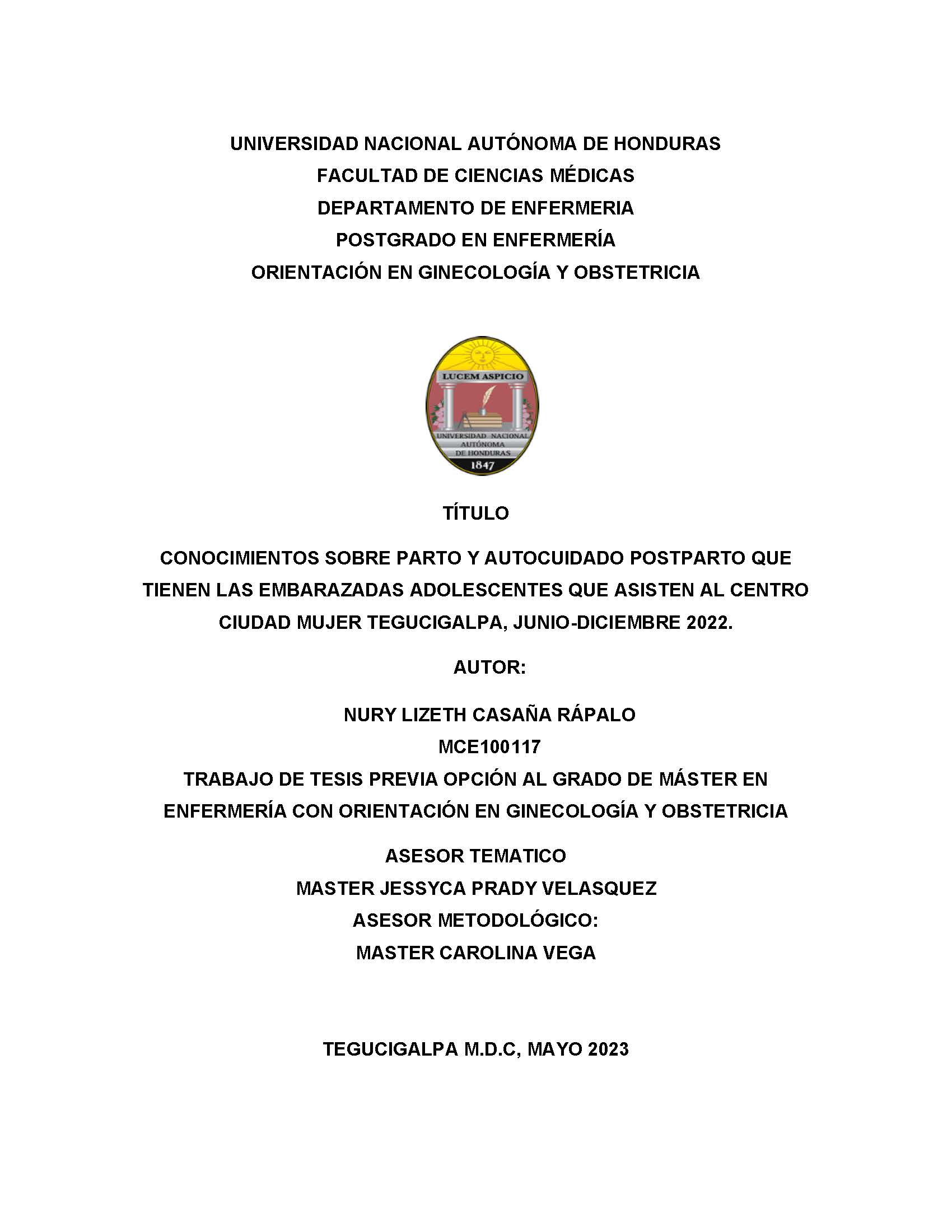 CONOCIMIENTOS SOBRE PARTO Y AUTOCUIDADO POSTPARTO QUE TIENEN LAS EMBARAZADAS ADOLESCENTES QUE ASISTEN AL CENTRO CIUDAD MUJER TEGUCIGALPA, JUNIO-DICIEMBRE 2022.
