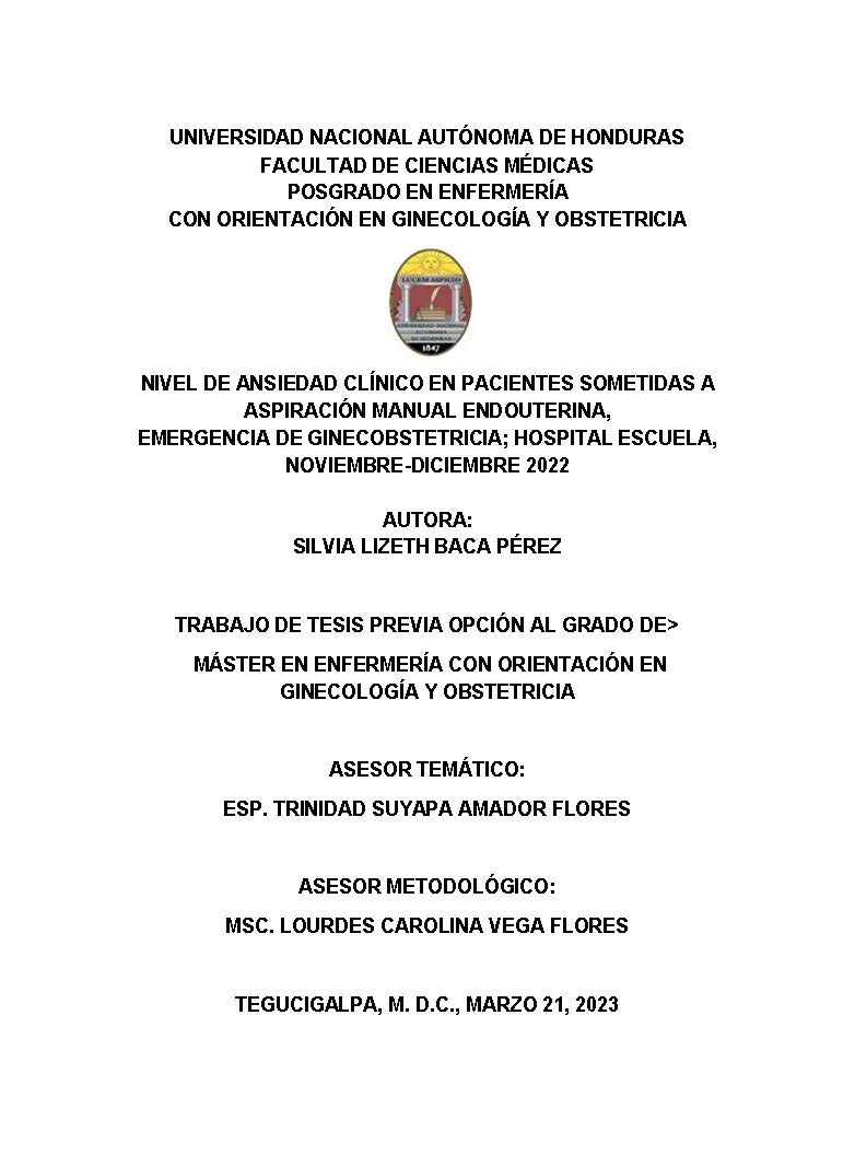 NIVEL DE ANSIEDAD CLÍNICO EN PACIENTES SOMETIDAS A ASPIRACIÓN MANUAL ENDOUTERINA,